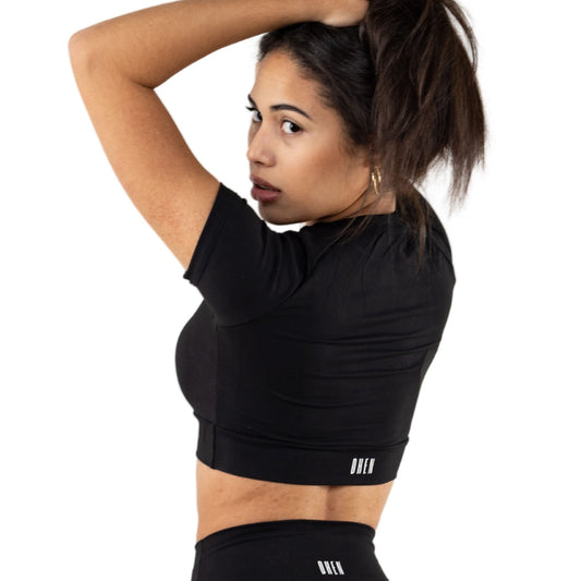 SHORT SLEEVE WOMEN'S ACTIVE CROP TOP - ONYX